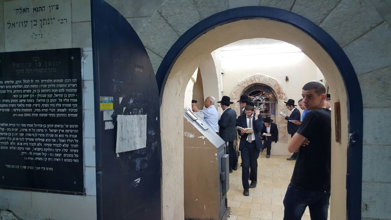 המונים נוהרים לתפילה מצאת השבת בציון התנא רבי יונתן בן עוזיאל בעמוקה לרגל יום ההילולא.